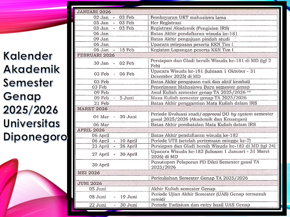 Informasi registrasi akademik semester Genap 2025/2026 Program Studi S1 Biologi