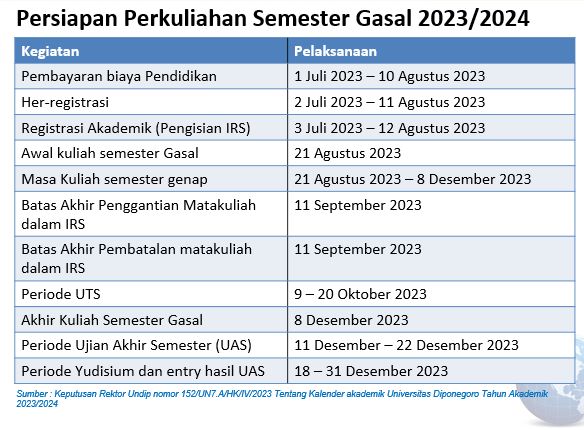 Informasi registrasi akademik semester Gasal 2023/2024 Program Studi S1 Biologi