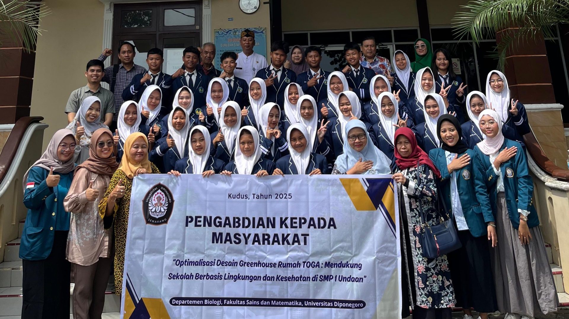 bio.fsm.undip.ac.id – Tim pengabdian masyarakat dari Departemen Biologi, Fakultas Sains dan Matematika, Universitas Diponegoro (UNDIP), menggelar kegiatan edukatif bertajuk “Pengenalan Tanaman Obat Keluarga (TOGA) bagi Siswa SMP 1 Undaan Kudus dalam Rangka Mendukung Program Green House untuk Adiwiyata Sekolah.” Kegiatan ini bertujuan untuk memperkenalkan konsep dan manfaat TOGA kepada siswa, sekaligus mendukung program lingkungan sekolah menuju predikat Sekolah Adiwiyata.
