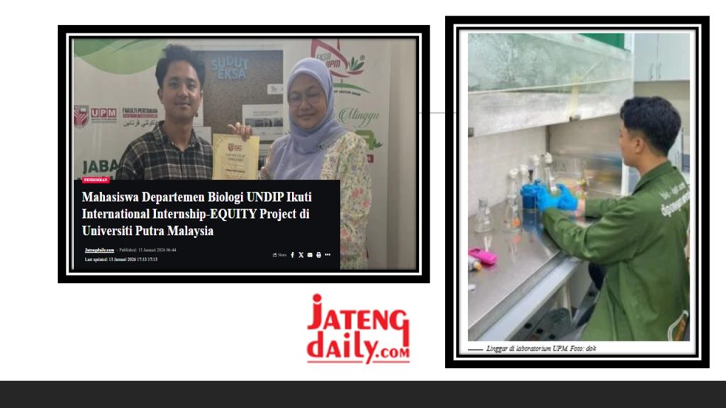Mahasiswa Departemen Biologi, Fakultas Sains dan Matematika (FSM) Universitas Diponegoro, Linggar Ridha Kawasa, baru saja merampungkan program International Internship di Universiti Putra Malaysia (UPM). Program ini merupakan bagian dari inisiatif Enhancing Quality Education for International University Recognition (EQUITY Project) UNDIP dalam skema Program ALBIC.