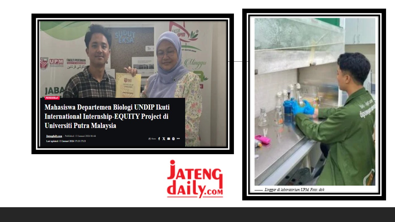 Mahasiswa Departemen Biologi, Fakultas Sains dan Matematika (FSM) Universitas Diponegoro, Linggar Ridha Kawasa, baru saja merampungkan program International Internship di Universiti Putra Malaysia (UPM). Program ini merupakan bagian